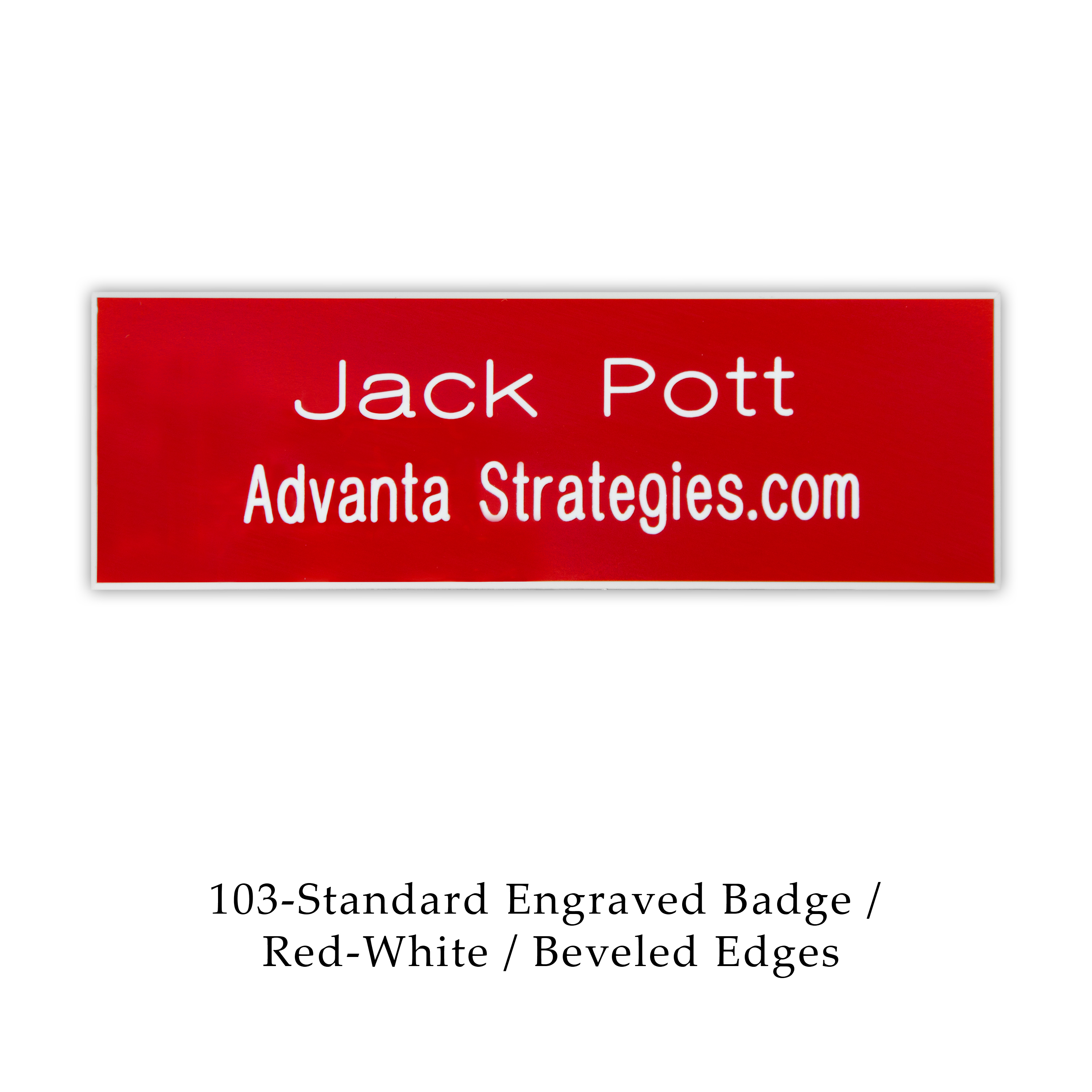 Text only Engraved Badges are Timeless. They feature your text engraved in any of our standard fonts. These badges are both simple and cost effective.